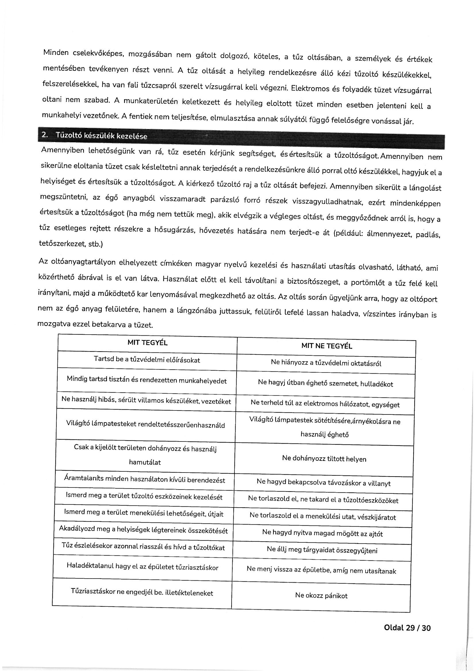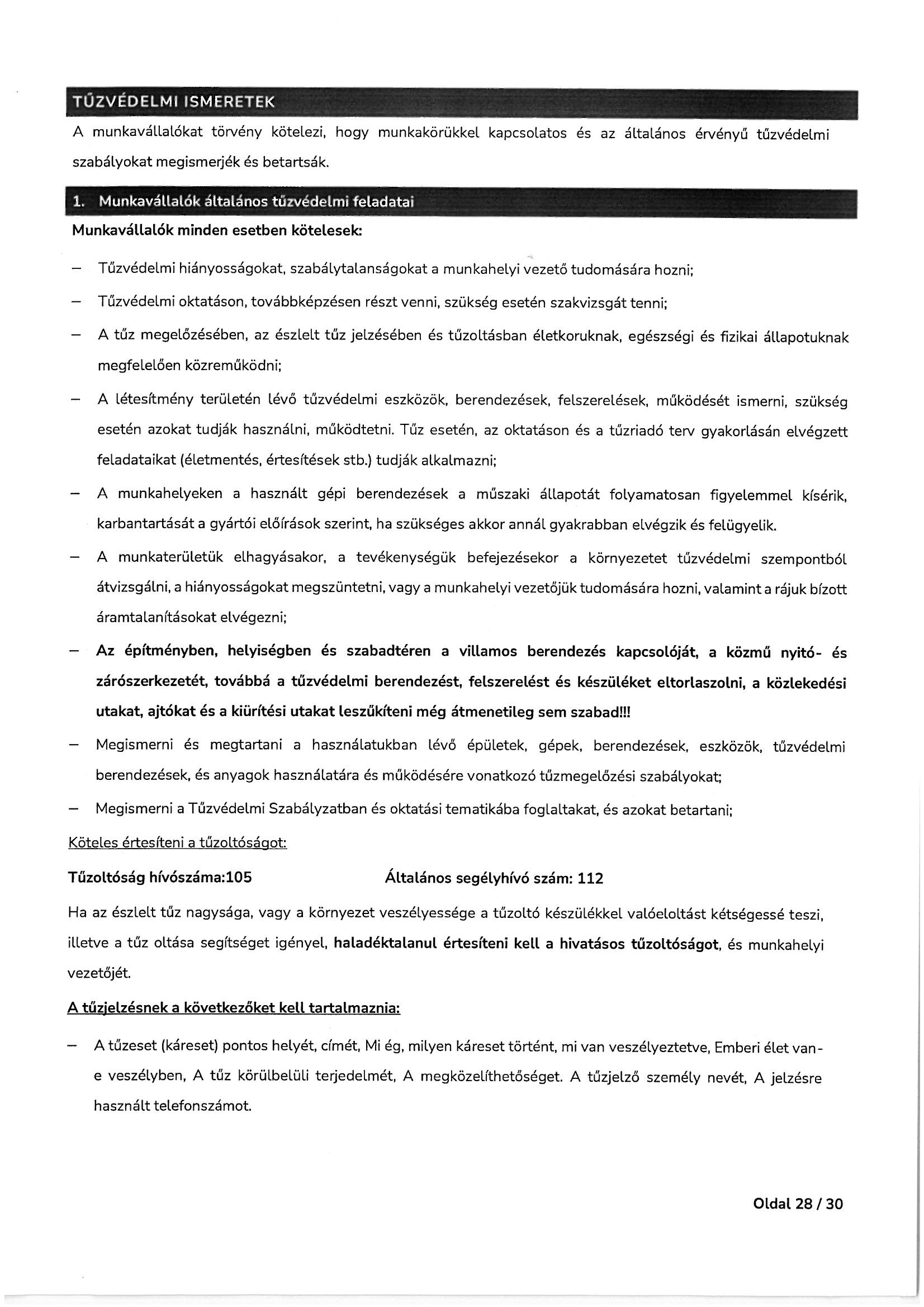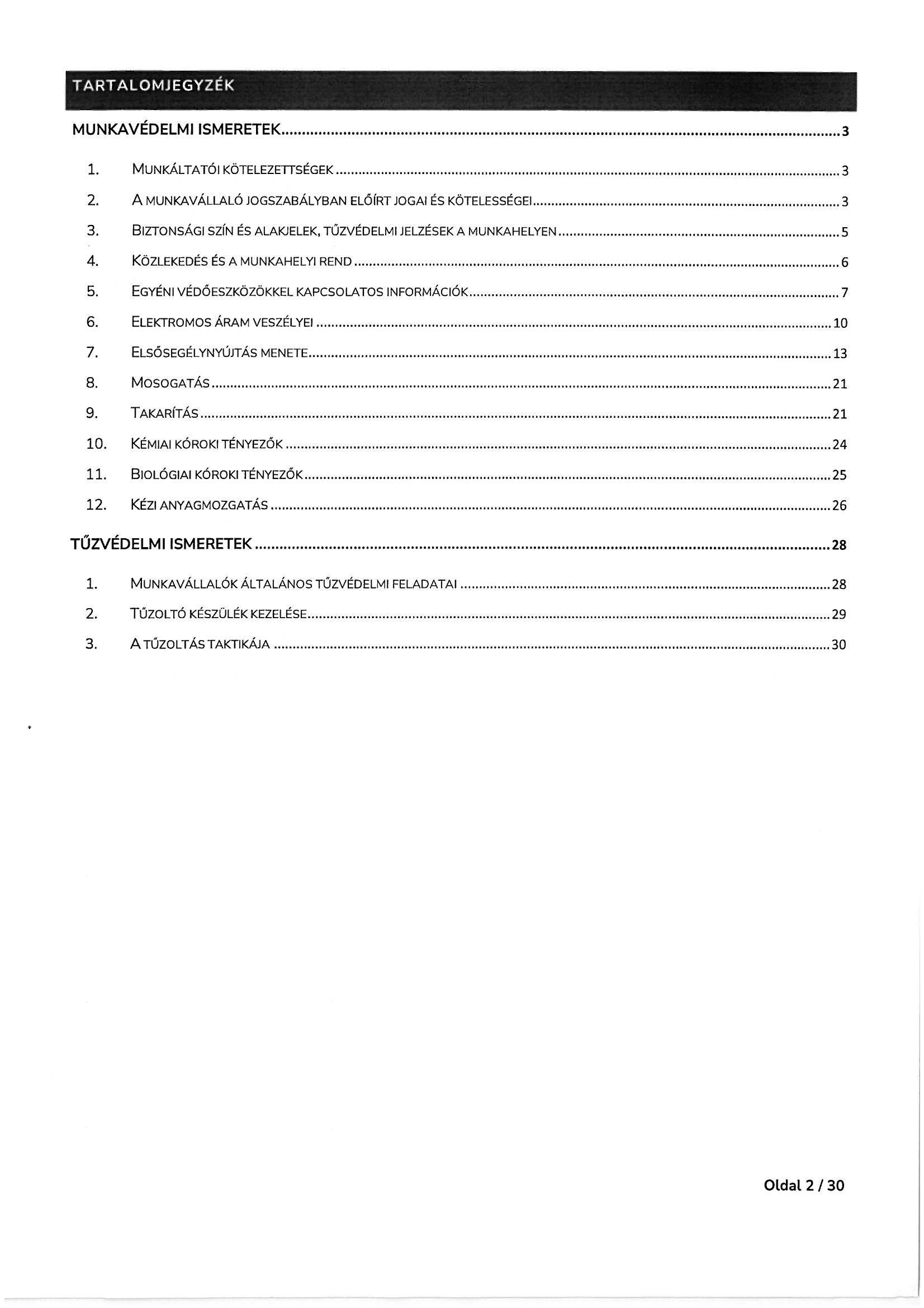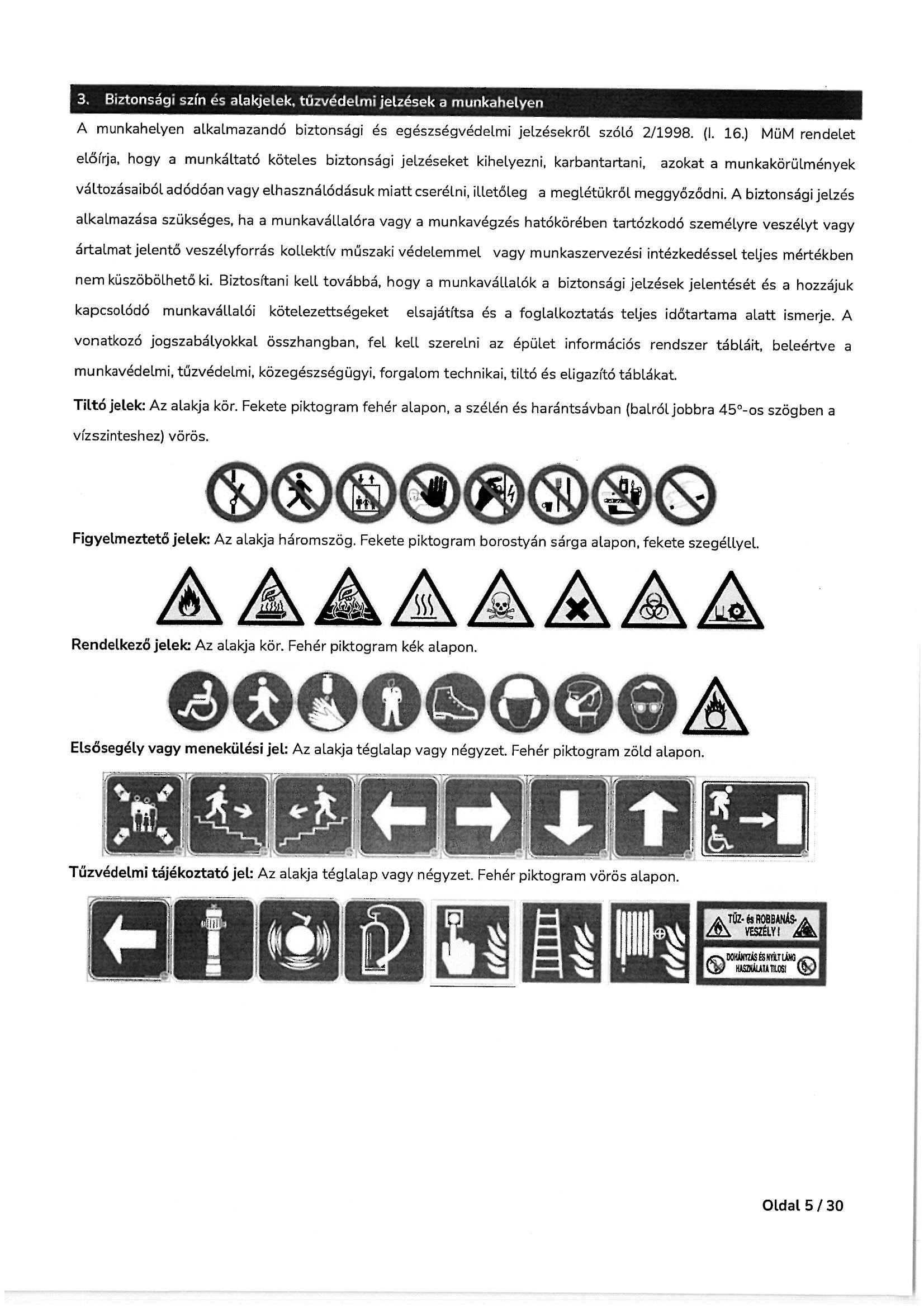 Munkavédelmi és tűzvédelmi oktatási tematika