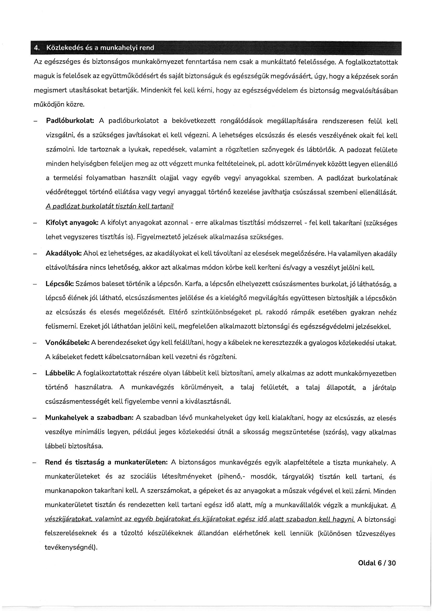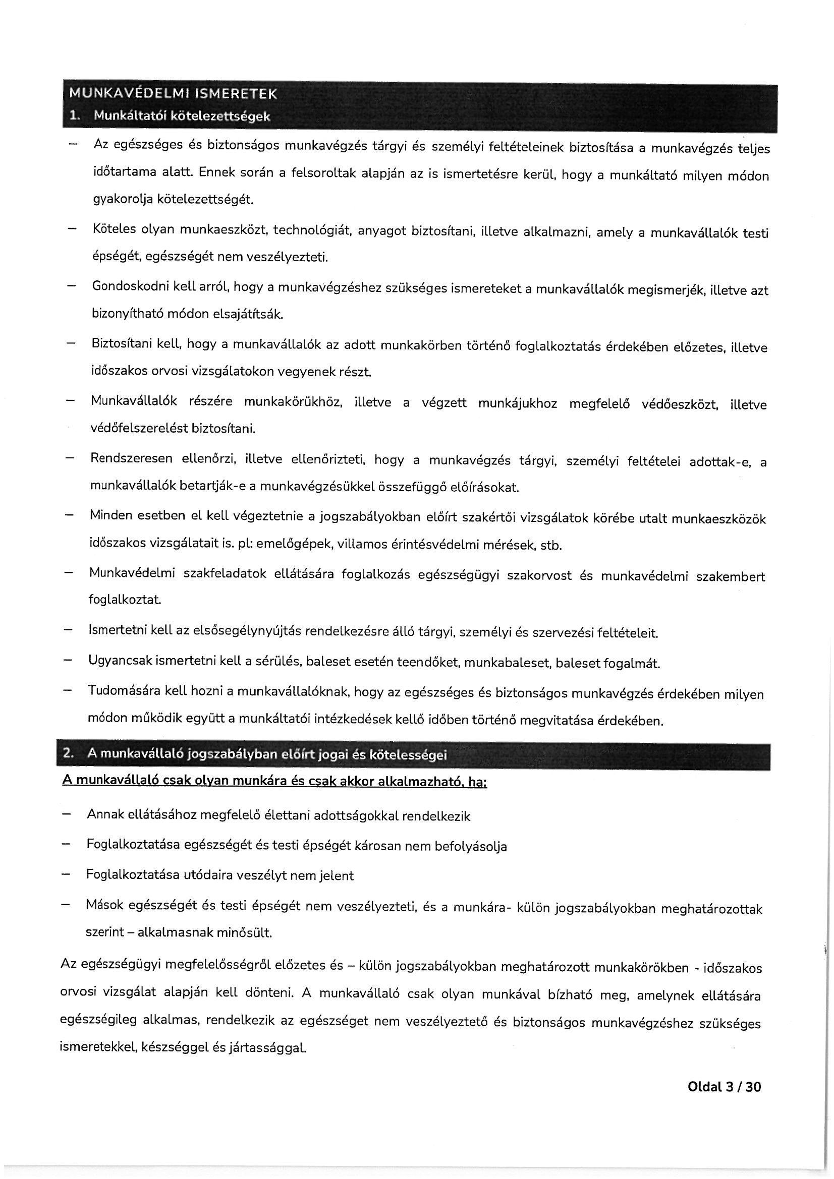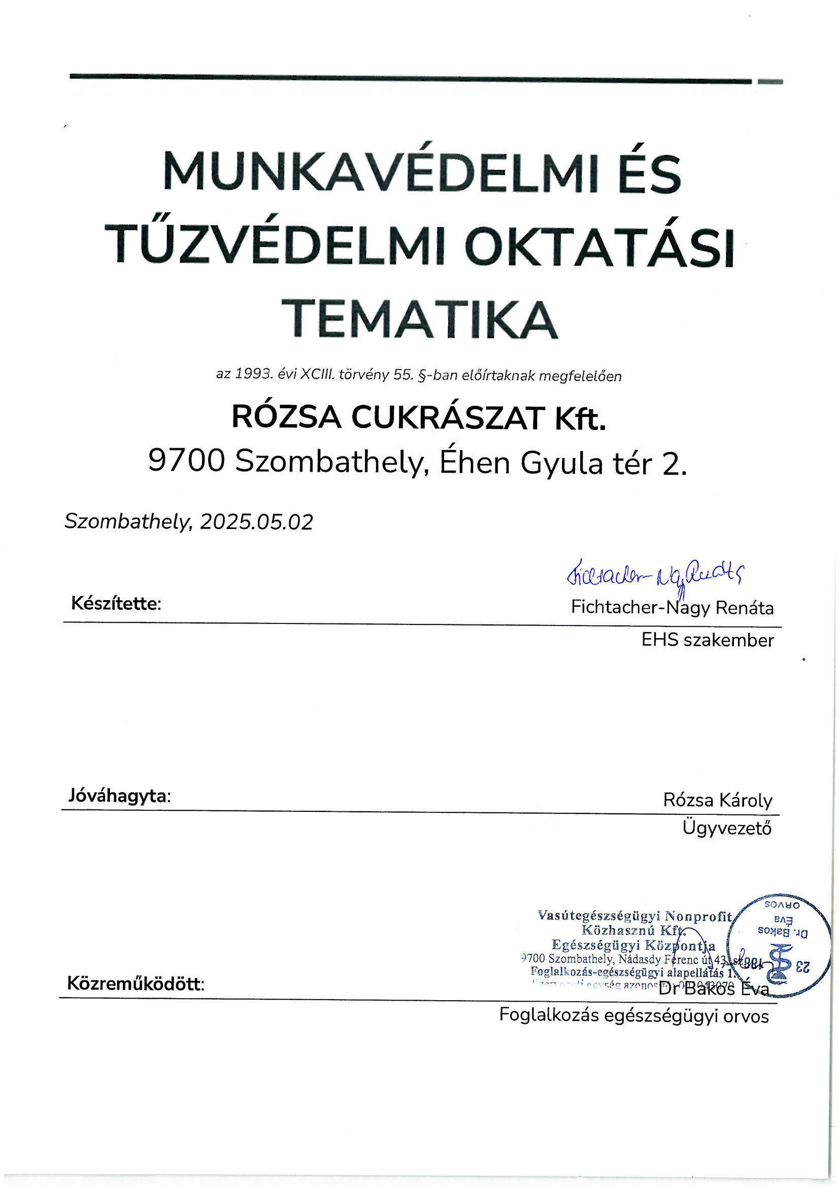 Munkavédelmi és tűzvédelmi oktatási tematika