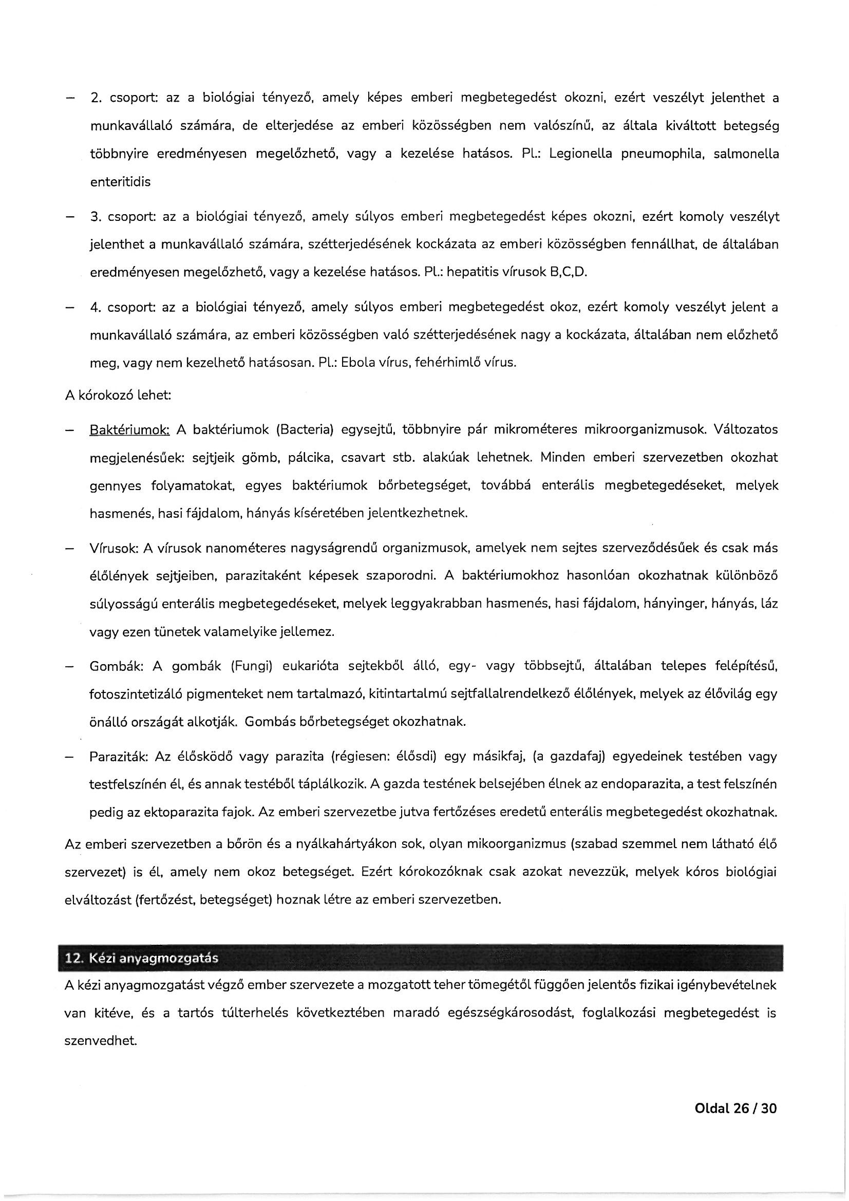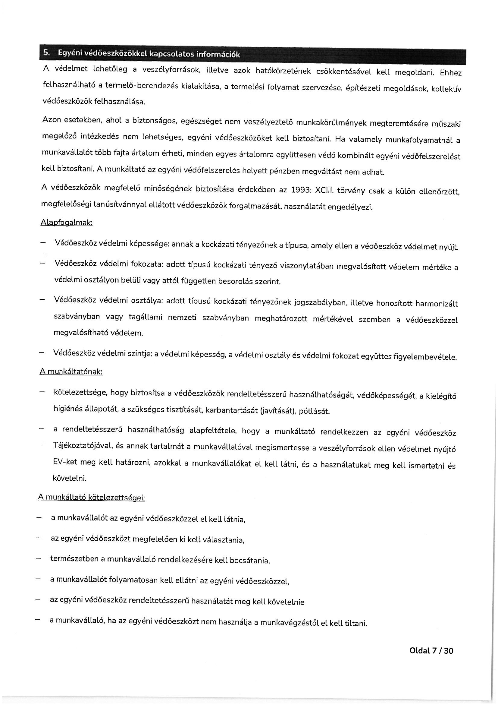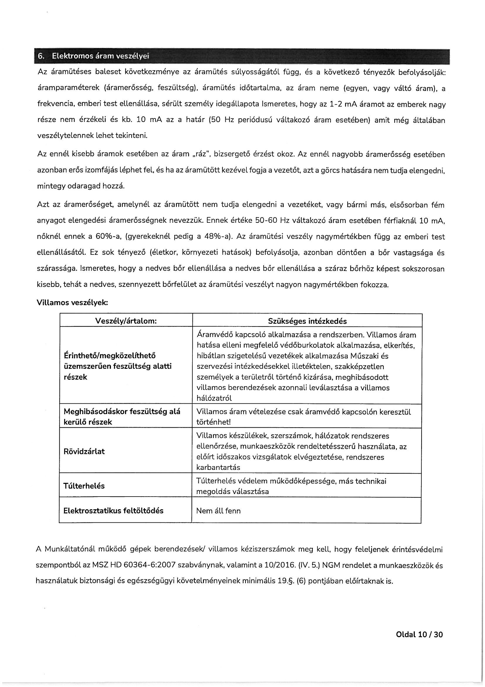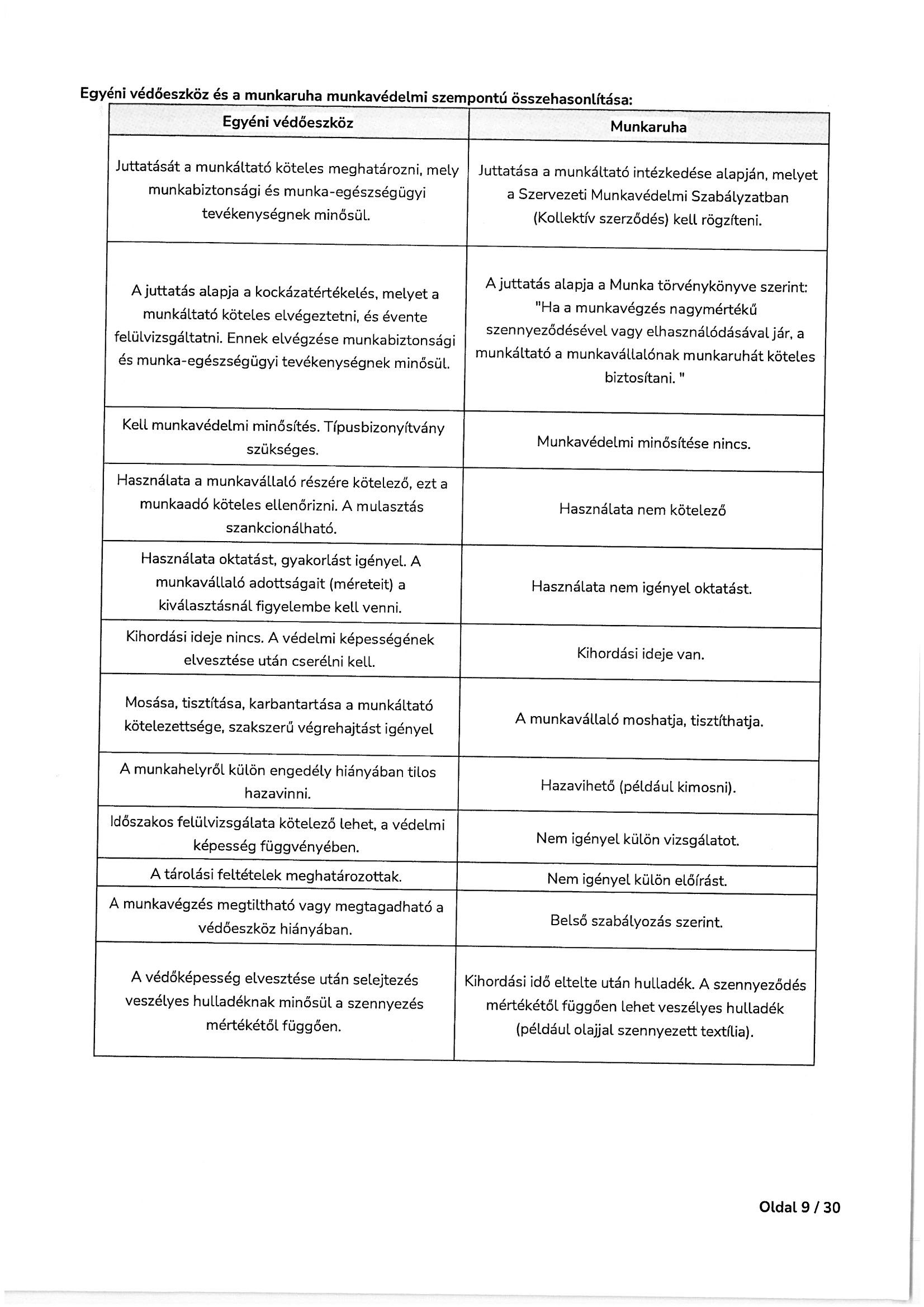 Munkavédelmi és tűzvédelmi oktatási tematika